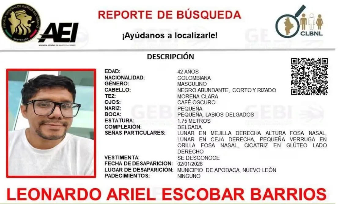 Leonardo Ariel Escobar Barrios, catedrático colombiano de la Universidad Iberoamericana de Puebla, narró los hechos que vivió durante su desaparición entre finales de diciembre y mediados de enero, periodo en el que habría sido golpeado por elementos de la Guardia Nacional y detenido ilegalmente en celdas de la Policía de Apodaca. El académico, quien es responsable de publicaciones en la Ibero Puebla, ofreció su testimonio en una rueda de prensa esta mañana, señalando a dicha institución como la única que le brindó respaldo y presionó a las autoridades para su localización.