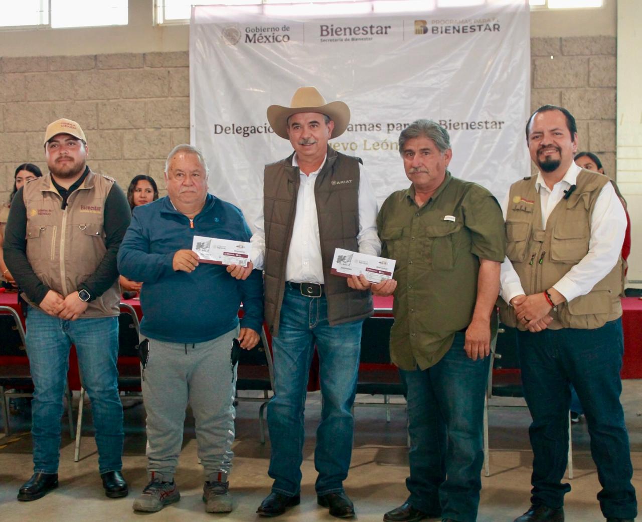 En el evento participaron Genaro Rodríguez Teniente, delegado de Programas para el Bienestar en Nuevo León; Jared Martínez Castellanos, coordinador regional; y el alcalde Gerardo Guzmán González. Las tarjetas fueron entregadas a personas registradas en diciembre de 2025 que ya cumplieron 65 años, requisito para integrarse al programa.