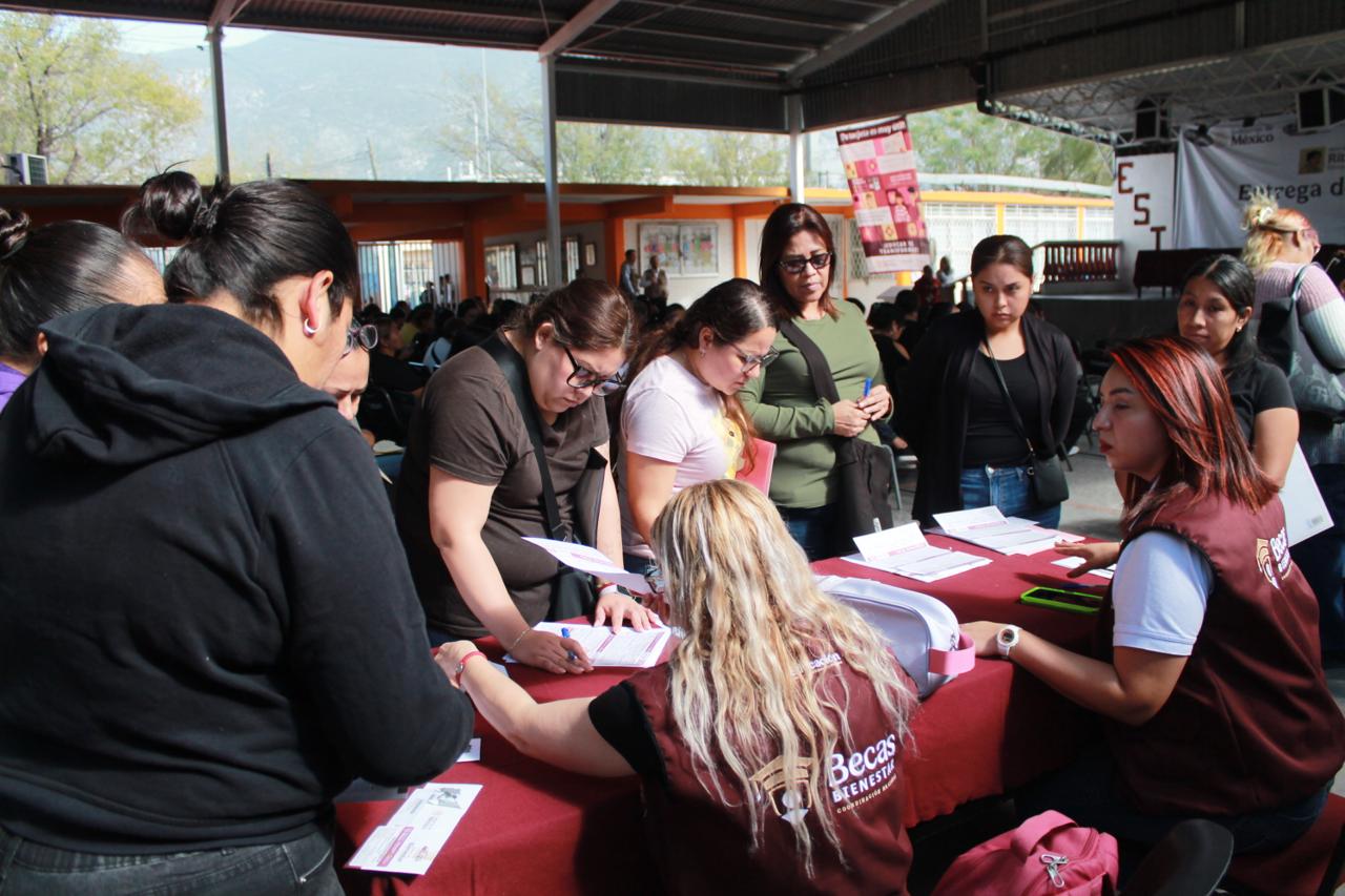 Este viernes comenzó en Monterrey la entrega de tarjetas de la Beca Universal “Rita Cetina”, uno de los programas prioritarios del Gobierno de México para garantizar la permanencia escolar de estudiantes de nivel básico. El arranque se realizó en la Escuela Secundaria No. 18 “Eduardo García Máynez”, con la asistencia de cientos de alumnos y padres de familia.