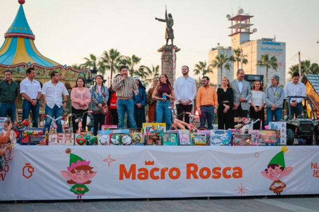 Uno de los momentos más representativos fue el corte de la “Macro Rosca”, una pieza de 450 metros de longitud que recorrió la Macroplaza y que fue acompañada de chocolate caliente para los asistentes. Además, el festejo incluyó música a cargo de la Banda de Música del Estado y un espectáculo infantil de Los Payasónicos, que mantuvo entretenidos a los más pequeños.