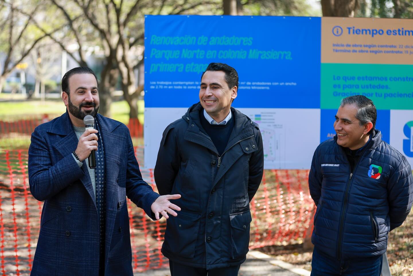 El Municipio de San Pedro inició la rehabilitación de los andadores interiores y perimetrales del Parque Norte, en la Colonia Mirasierra, con una inversión total de 4 millones de pesos. La obra abarca mil 505 metros cuadrados y beneficiará directamente a cerca de 2 mil 500 habitantes de la zona.