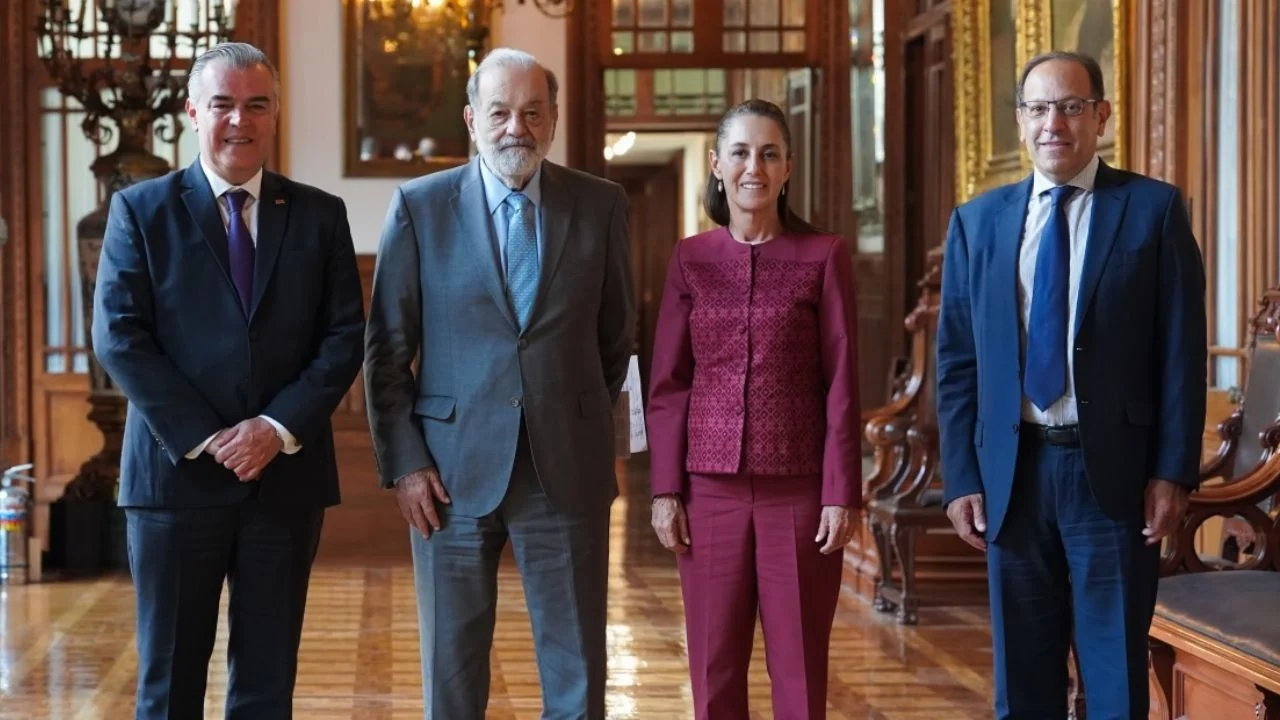 La presidenta Claudia Sheinbaum recibió este lunes en Palacio Nacional al empresario Carlos Slim, a su hijo Marco Antonio Slim Domit y al presidente del CCE, Francisco Cervantes, en una comida privada que duró casi tres horas para analizar los pronósticos económicos favorables de México para el cierre de 2025 y 2026.
