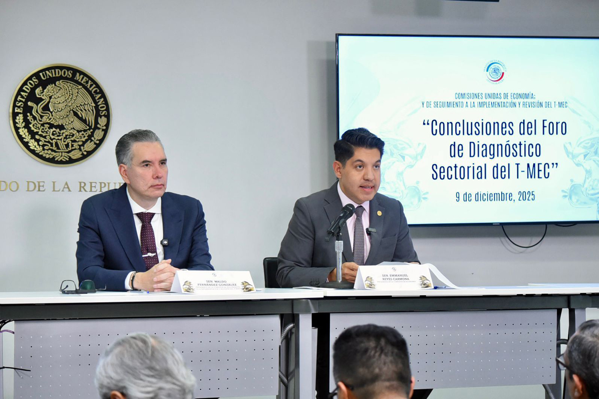 El senador Waldo Fernández González, presidente de la Comisión de Seguimiento a la Implementación y Revisión del T-MEC, presentó a la presidenta Claudia Sheinbaum una carta que reúne las principales conclusiones del Foro de Diagnóstico Sectorial, realizado por el Senado como preparación para la revisión del acuerdo comercial en 2026. En conferencia conjunta con el senador Emanuel Reyes Carmona, Fernández destacó la importancia de que el Legislativo aporte insumos técnicos, políticos y productivos a la estrategia nacional.